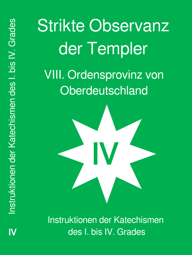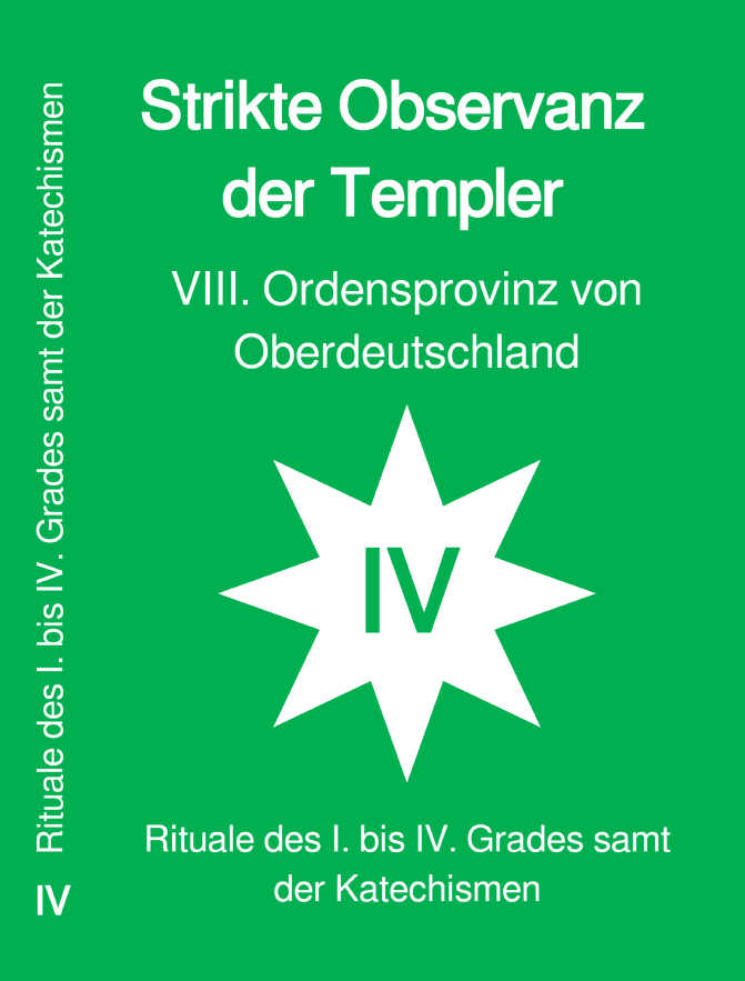 Die Inhalte der ersten drei Grade (Lehrlinge, Geselle und Meister) werden in einigen (aber nicht allen) Kooperationslogen (Link) nach dem gleichen System der Strikten Observanz der Templer vermittelt. Denn das Gesamtsystem ist vom Lehrling bis zum Berufenen Ritter in sieben Graden konzipiert. Bei der Aufnahme in den Schottischen Meistergrad (IV. Grad) erhält die neue Schottische Meisterin bzw. der neue Schottische Meister ein Ritual- und Unterrichtsbuch, worin sich die Rituale der Strikten Observanz der Templer vom Lehrlings- bis zum Schottischen Meistergrad, die Katechismen der ersten vier Grade sowie der Geheime-Schottische-Meister-Katechismus und die sieben Lebensfragen (Link) finden. (siehe Abbildung) Ihr/Ihm wird nahegelegt, sich mit dem Ritual- und Unterrichtsbuch intensiv zu befassen und bei Fragen auf die Präparatoren zuzugehen.
